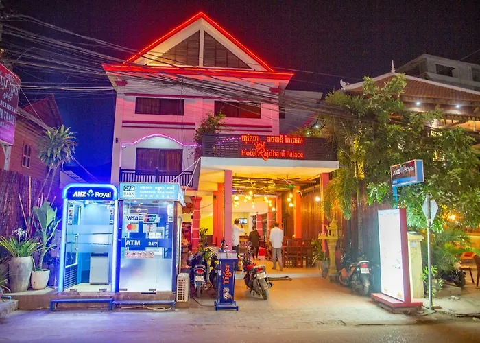 Hotel Rajdhani Palace Siem Reap met 24 kamers ligt in de Sok San Road wijk van de stad en biedt toegang tot uitgaansgelegenheden zoals Platinum Cineplex Siem Reap, op grofweg 7 minuten loopafstand vandaan. Dit hotel biedt een verblijfsplaats met Wi-Fi in de hele accommodatie.